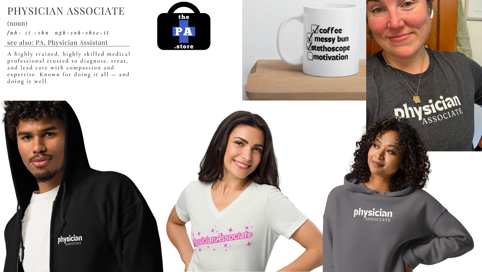 I’m Marlie—a practicing PA, chaos-juggler, and proud member of this profession. I started The PA Store because I couldn’t find apparel and accessories that really captured what it means to be a PA. Every design here is made with our community in mind: a mix of humor, pride, and the realities of our work.